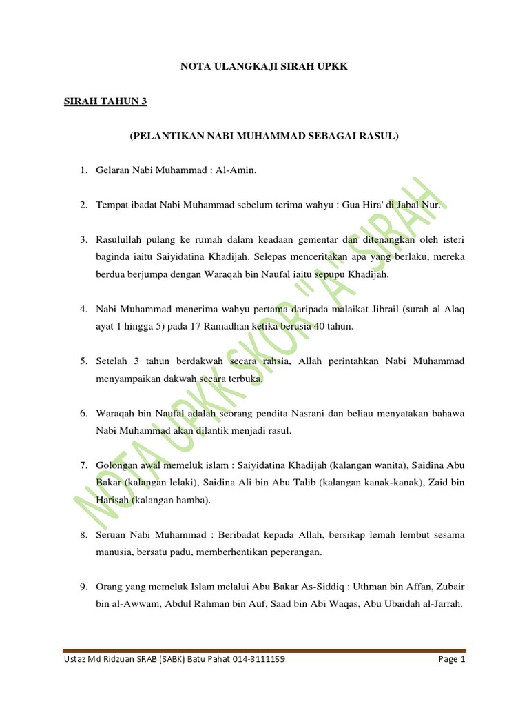 Nota Ulangkaji Sirah Upkk Pdf Pdf